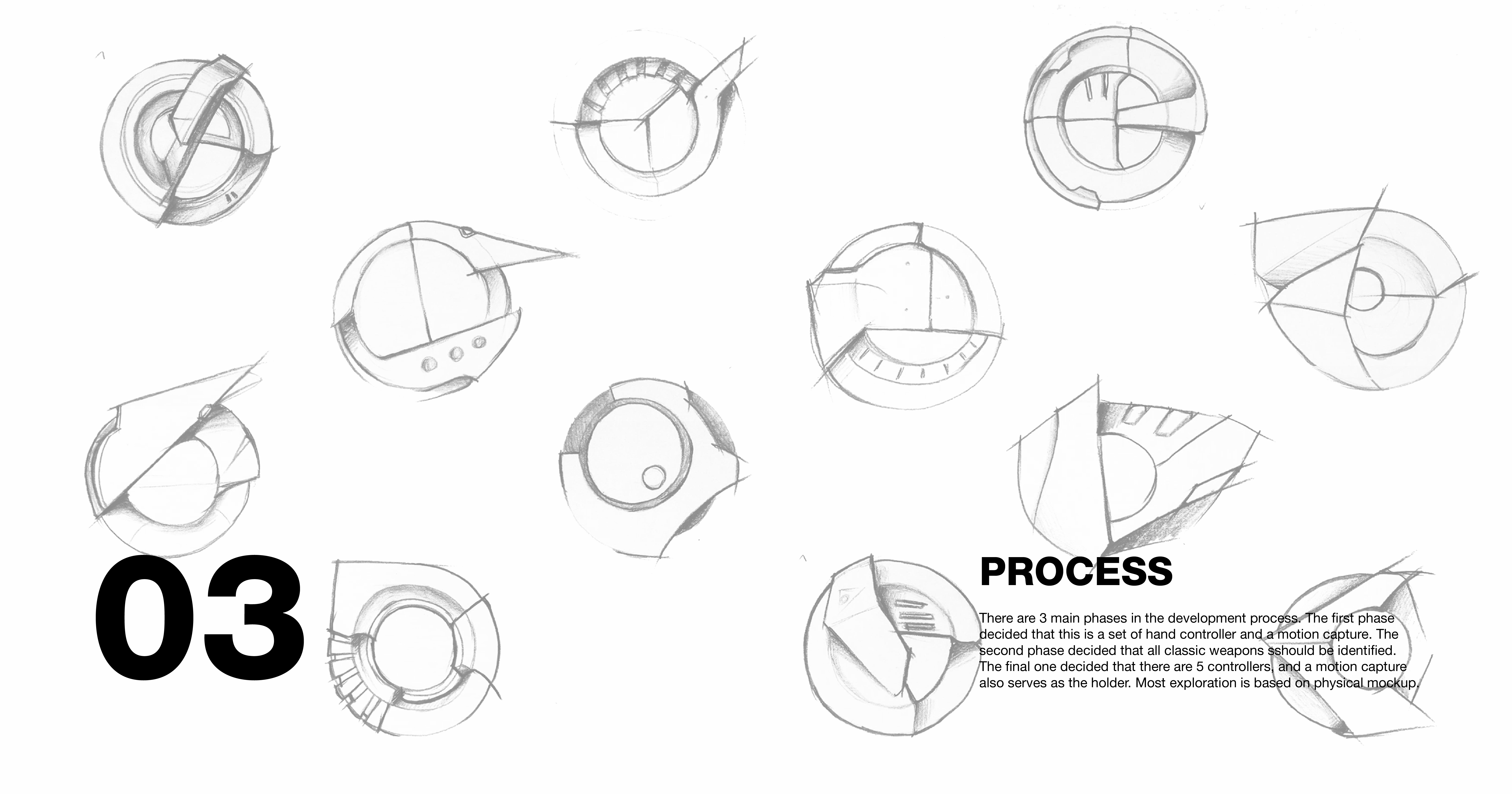 I try to make a controller that does not look like a real gun, but feels like a real gun. At last I focus on the circle shape. the fold-able shoulder stock can provide better stability.